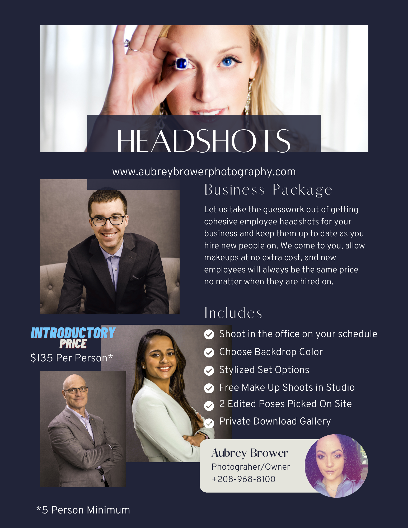 You will receive 2 edited poses per employee in digital format that you can download from your member area anytime. The initial account setup is $250 and then $175 per person. But during our rebranding, we are doing introductory pricing of $135 which will lock you in for the first 2 years.